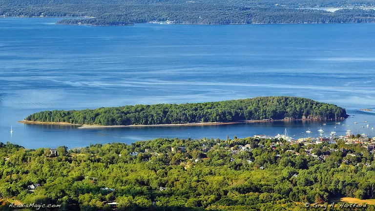 Once you cross over to Bar Island via the natural land bridge, you will climb over some rocks before reaching a wide path (more like a small vehicle access road) that goes up a gradual incline to the left through a wooded area. This goes for a short distance, then makes a hard right turn up another inclined section. If you look closely to the right near the start of this road, you should see a small foot path that goes up through the woods. Taking this path will cut off quite a few steps but is a little steeper climb. Having a walking stick of some kind or even an extended photo tripod can help. (Guess what? You are no longer in Bar Harbor! Read the Interesting Fact below.)